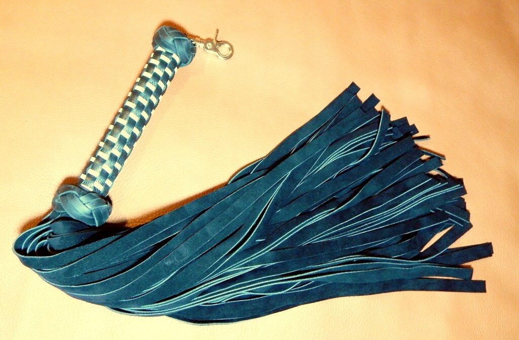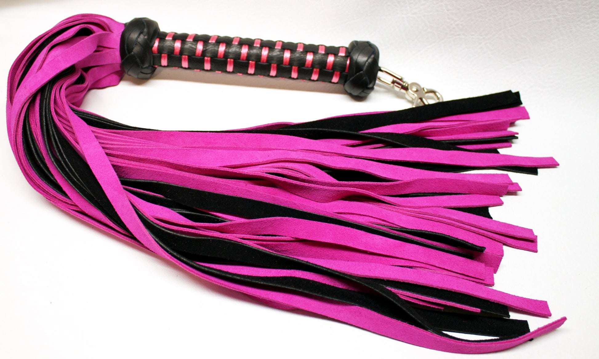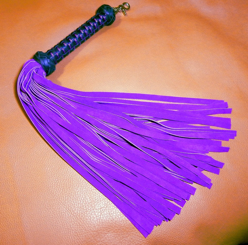 60 1/2" x 21" falls with 8" handle. Black leather handle and knots with matching or complimentary braid trim. Built for thud lovers!
