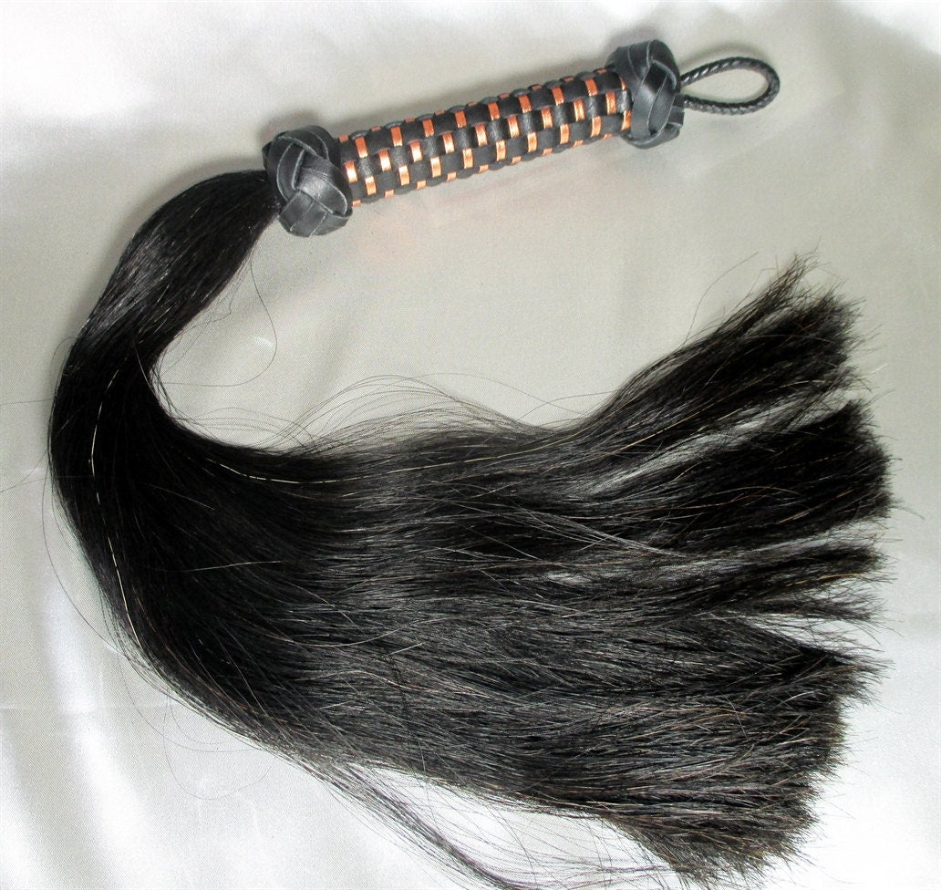 A quarter pound of horsehair on a braided leather handle.