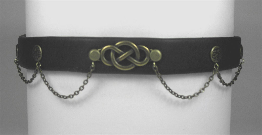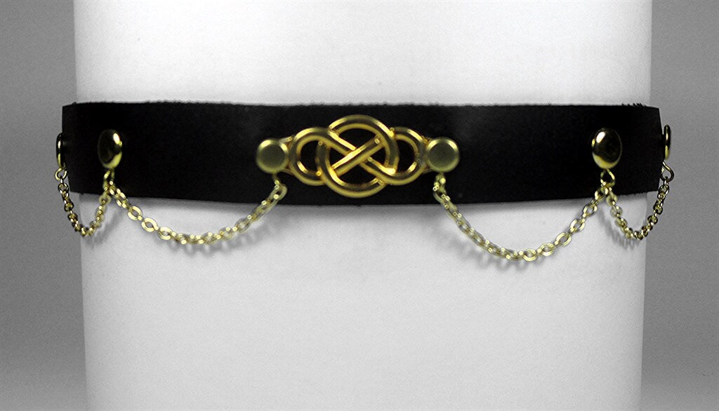 Elegant smooth cowhide dress collar with infinity knot and matching chain.