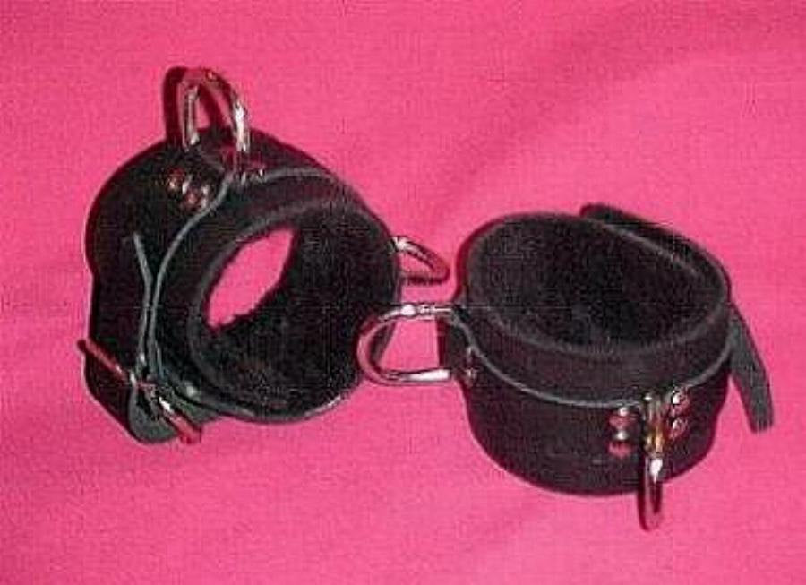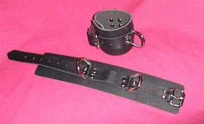 Heavy duty leather ankle cuffs - built to last! Nickel plated hardware with two rings, Fits up to 12" ankle circumference. Available with or without a comfortable fleece lining. Price is for the pair. Custom sizes at no additional charge