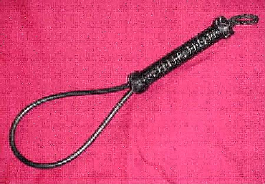 Loops is 16" of 7/16" rubber with 8" handle, hanging loop.