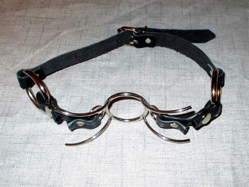 Stainless steel spider style ring gag. 1 1/2" ring, mouthpiece is removable for cleaning.