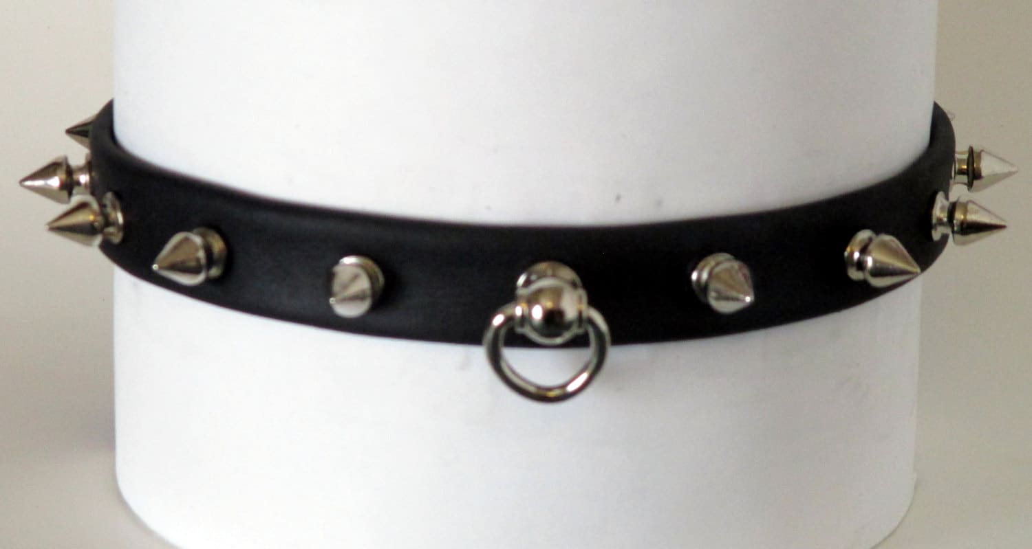 3/4" wide. Adjustable snap closure fits 14" - 18" neck circumference.