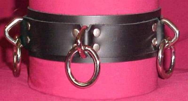 Basic leather collar with 3 nickel plated drop rings. Soft deerskin lining.